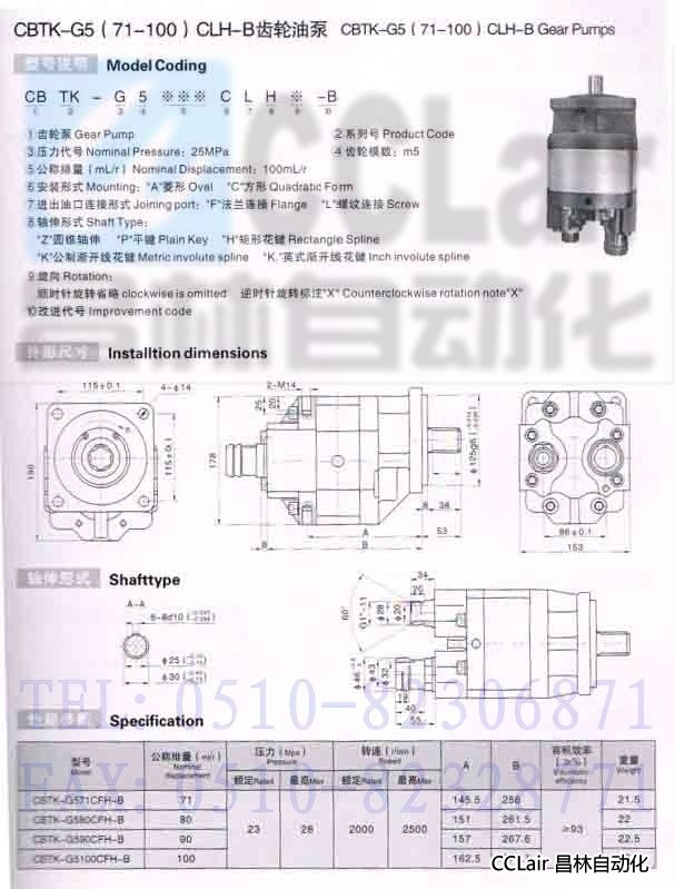 詳細信息 CBTK-G571CLH-B,CBTK-G580CLH-B,CBTK-G590CLH-B,CBTK-G5100CLH-B,齒輪油泵