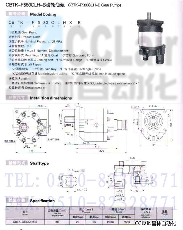 CBTK-G580CLH-B,齒輪油泵
