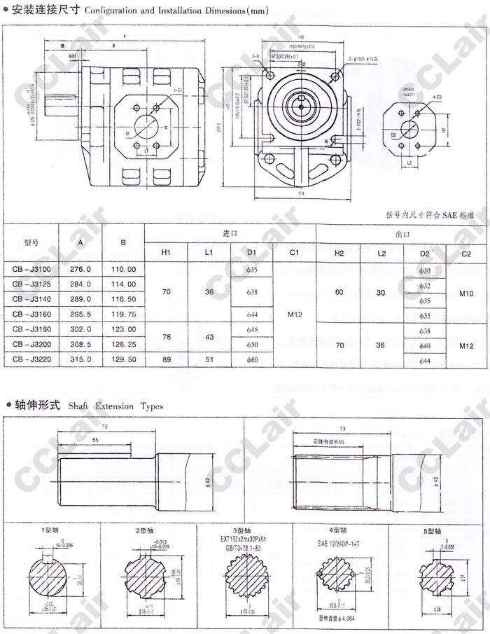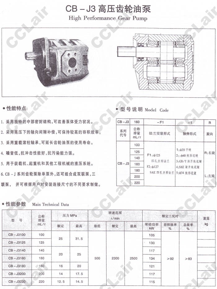 詳細(xì)信息 CB-J3100,CB-J3125,CB-J3140,CB-J3160,CB-J3180,CB-J3200,CB-J3220,高壓齒輪油泵,YUCIYUKEN