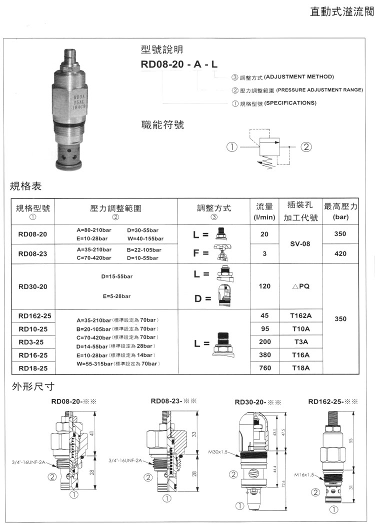 RD08-20,RD08-23,RD30-20,RD162-25,RD10-25,RD3-25,RD16-25,RD18-25,RD08-20-A-L,直動(dòng)式溢流閥