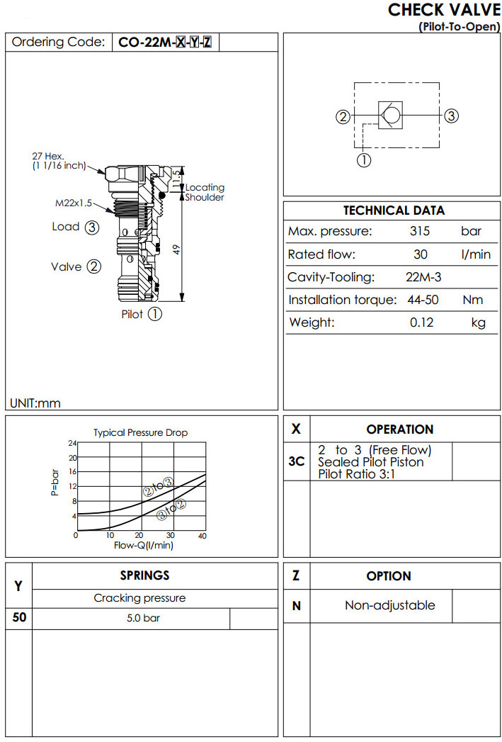 詳細信息 CO-22M-3C-50-N,止回閥