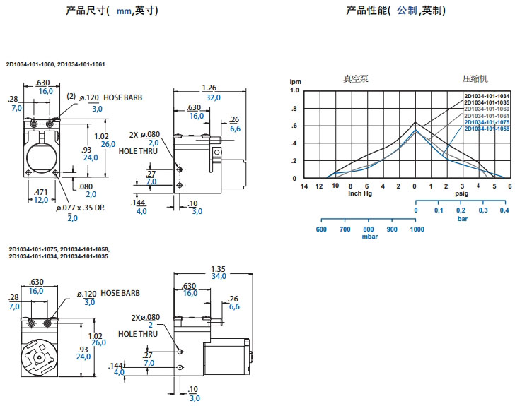 2D1034-101-1034,2D1034-101-1035,2D1034-101-1060,2D1034-101-1061,隔膜式真空泵/壓縮機