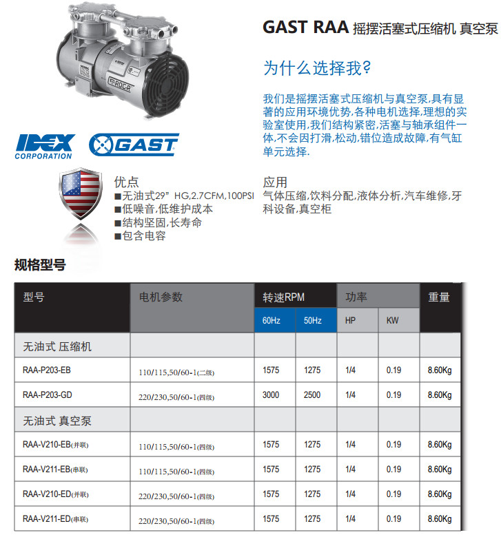 RAA-P203-EB,RAA-P203-GD,RAA-V210-EB,RAA-V211-EB,RAA-V210-ED,搖擺活塞式壓縮機(jī)/真空泵
