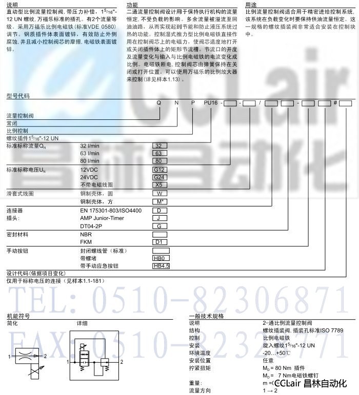 詳細(xì)信息 QNPPU16,插裝式比例2-通流量控制閥