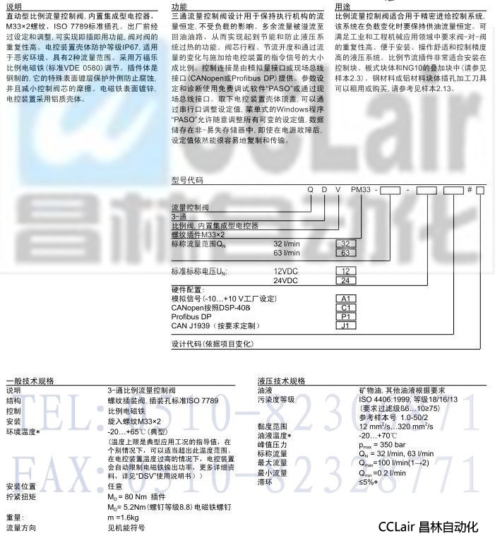 QDVPM33,插裝式比例 3-通流量控制閥(內(nèi)置集成型電控器)