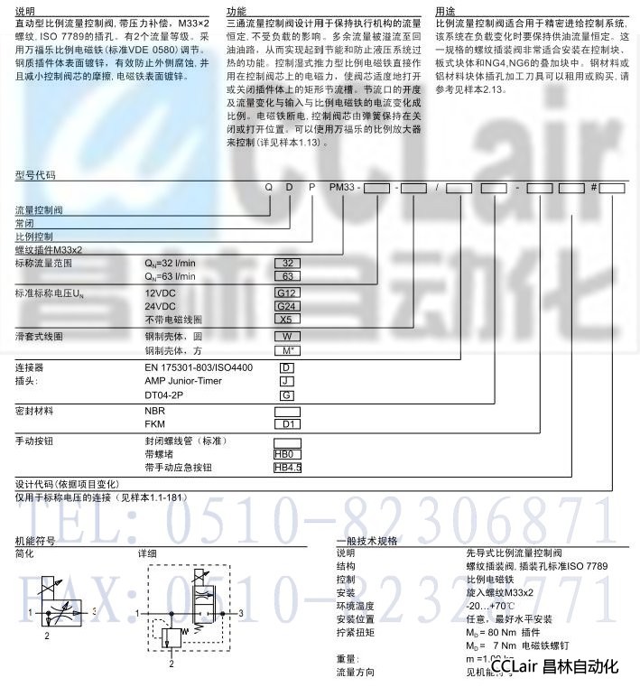 QDPPM33,插裝式比例 3-通流量控制閥(滑套式線圈)