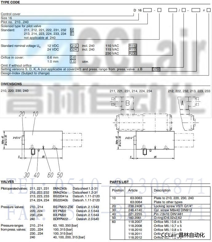 D16211M,D16213S,帶壓力功能的2位2通插裝閥