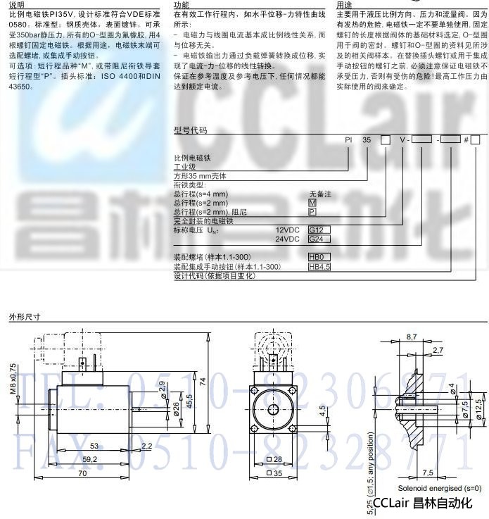 詳細(xì)信息 PI35V,比例電磁鐵