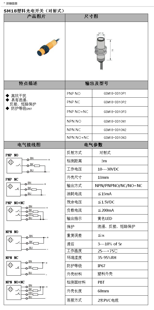 詳細信息 GSM18-DD10P1,GSM18-DD10P2,GSM18-DD10N1,GSM18-DD10N2,GSM18-DD10N3,SM18光電(對射)