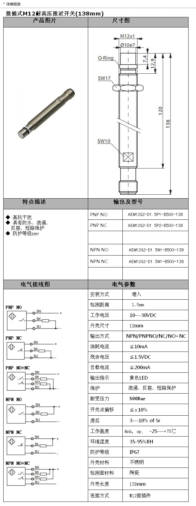 詳細(xì)信息 AEM12G2-D1.5P1-B500-138,AEM12G2-D1.5N1-B500-138,AEM12G2-D1.5N1-B500-138,M12接插式(138mm)