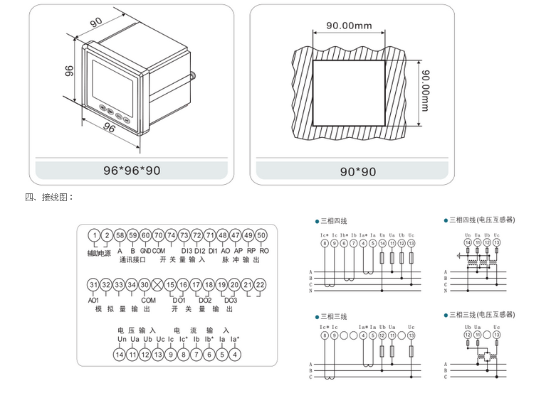 輸出:2路電能脈沖輸出、2路開關量輸出、1路模擬量輸出
