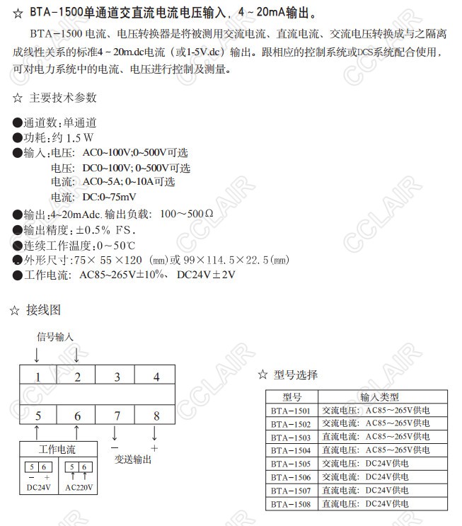 BTA-1501,BTA-1502,BTA-1503,BTA-1504,BTA-1505,BTA-1506,BTA-1500,交直流電流電壓轉(zhuǎn)換器