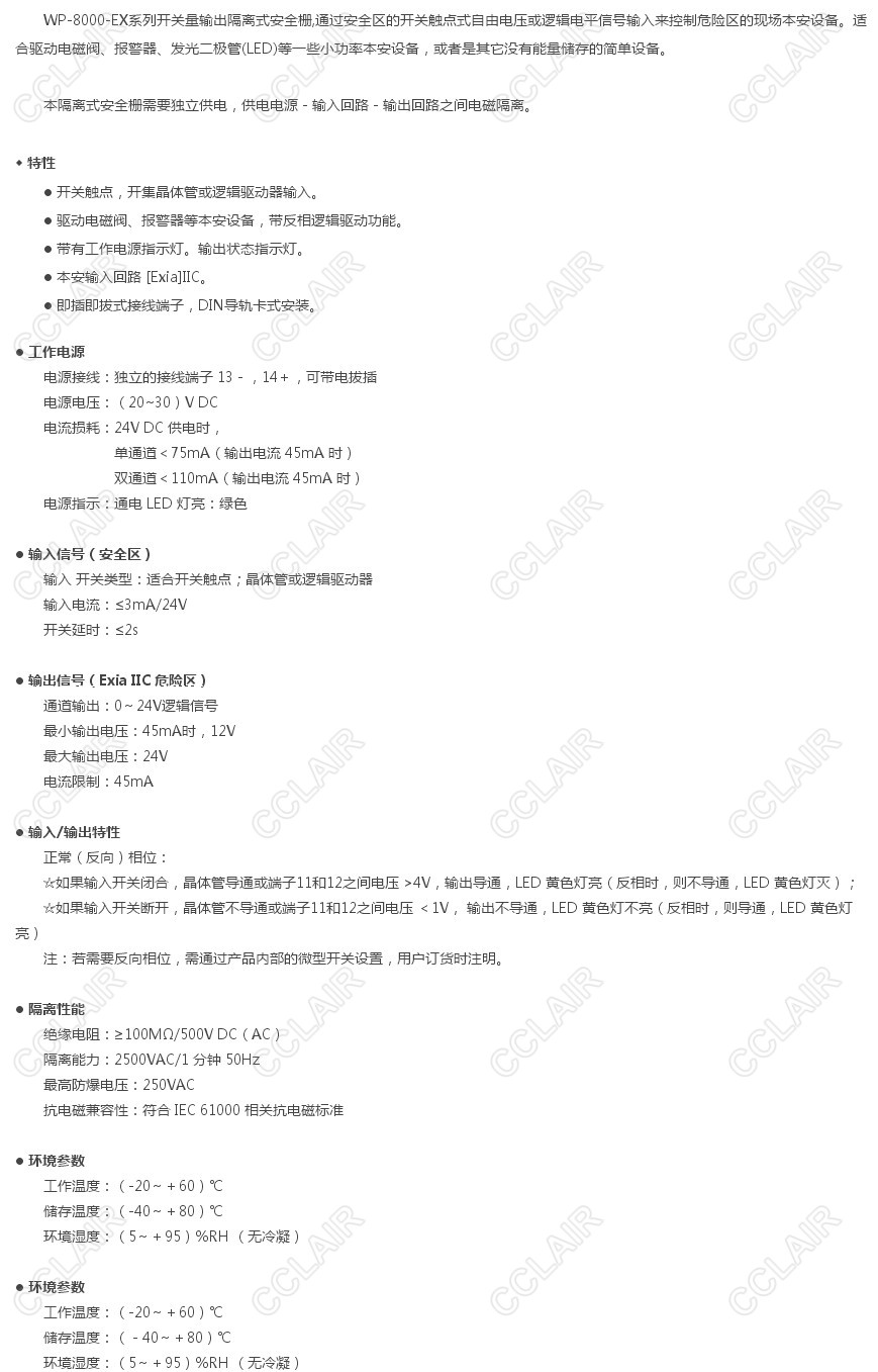 WP-8121-EX,WP-8015-EX,開關(guān)量輸出隔離式安全柵(帶配電)