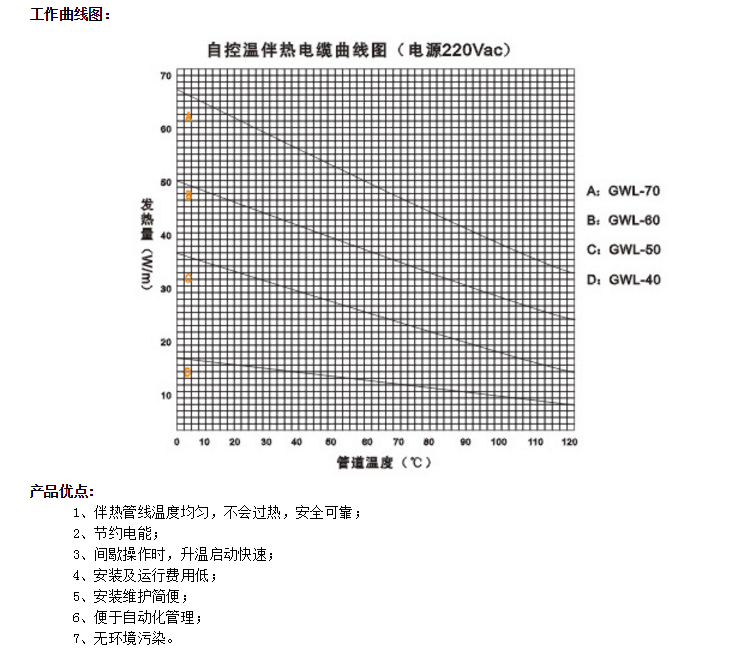 ⒉低溫狀態(tài)速起動(dòng),溫度均勻,因每一局部皆可因其被伴熱處的溫度變化自動(dòng)調(diào)節(jié);