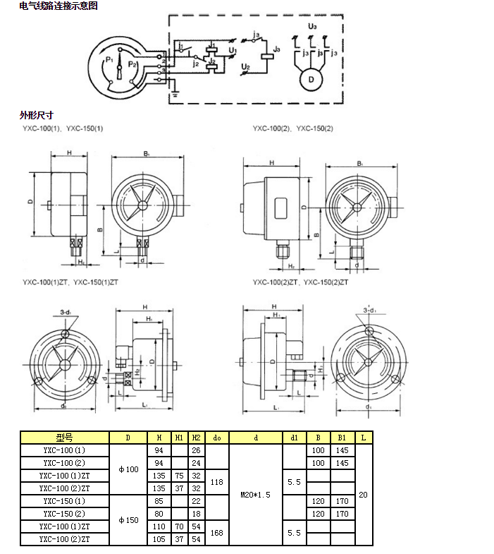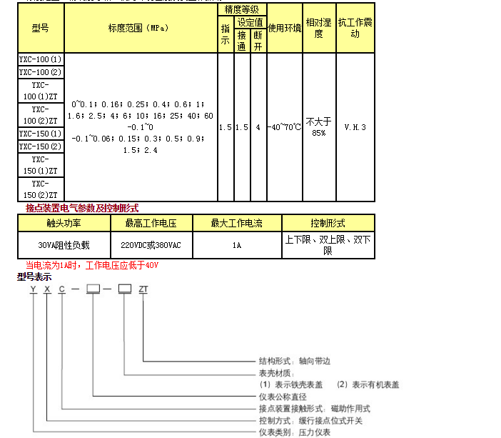 YXC-150(2),YXC-100(1)ZT,YXC-100(2)ZT,磁助電接點(diǎn)壓力表