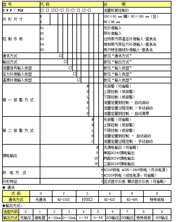 SWP-FLK系列智能流量積算控制儀流量系數(shù)K自動演算。它能提供多種狀態(tài)下的質(zhì)量流量積算,如標(biāo)準(zhǔn)體積、質(zhì)量、熱能、流量計算等。也支持多種補(bǔ)償方式:壓力補(bǔ)償、溫度補(bǔ)償、溫度壓力同事補(bǔ)償。支持過熱蒸汽、飽和蒸汽計算等進(jìn)行積累積算。它具有帶定量控制功能。