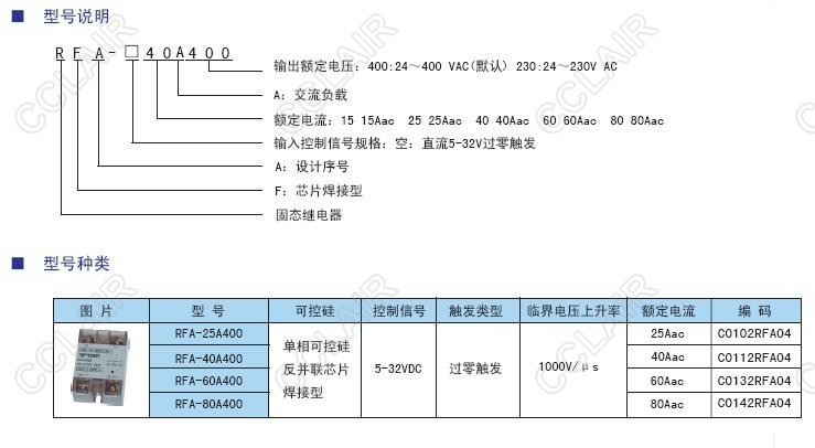 RFA-25A400,RFA-40A400,RFA-60A400,RFA-80A400,RFA芯片型固態(tài)繼電器
