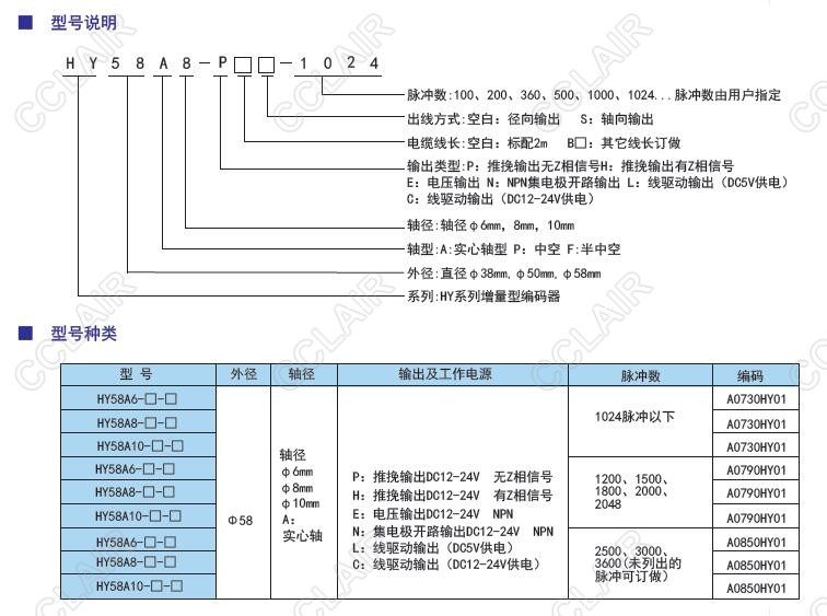 HY58A6/8/10-P-100/200/360/500/1000/1024/1200/1500/1800/2000/2048,HY58 旋轉(zhuǎn)編碼器