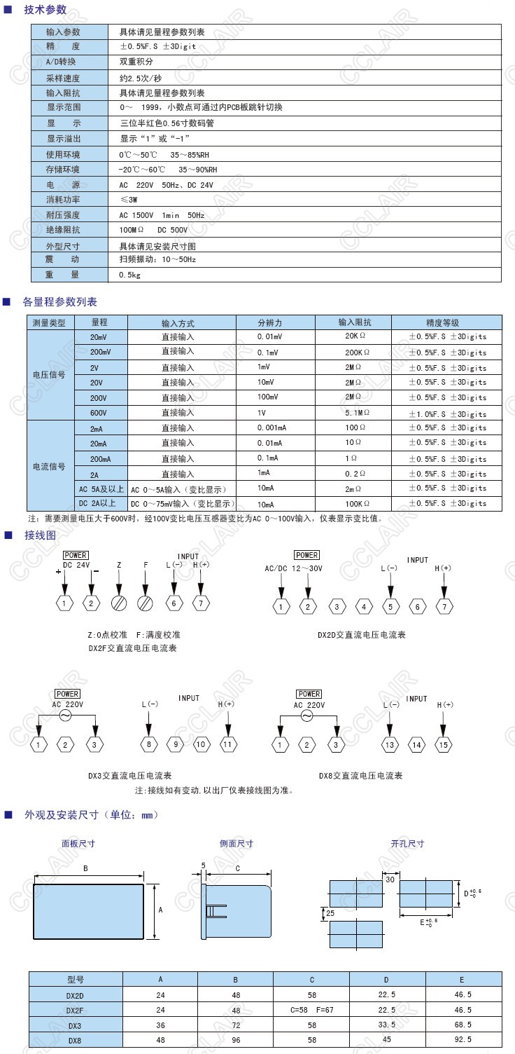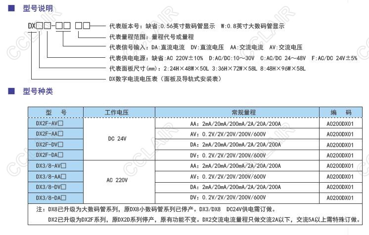 DX2D-AV2,DX2D-AV20,DX2D-AV200,DX2D-AV600,DX三位半電壓電流表