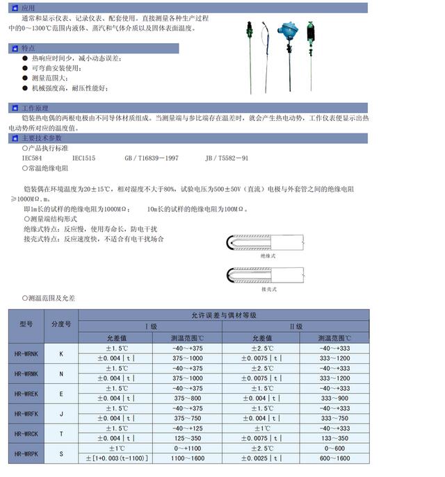 通常和顯示儀表、記錄儀表等配套使用。直接測(cè)量各種生產(chǎn)過(guò)程中的0~1300℃范圍內(nèi)液體、蒸汽和氣體介質(zhì)以及固體表面溫度。