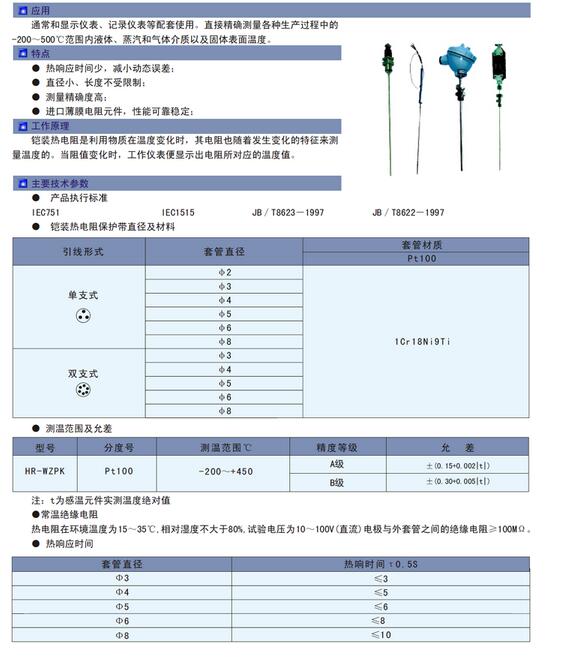 通常和顯示儀表、記錄儀表等配套使用。直接精確測(cè)量各種生產(chǎn)過(guò)程中的-200~500℃范圍內(nèi)液體、蒸汽和氣體介質(zhì)以及固體表面溫度。