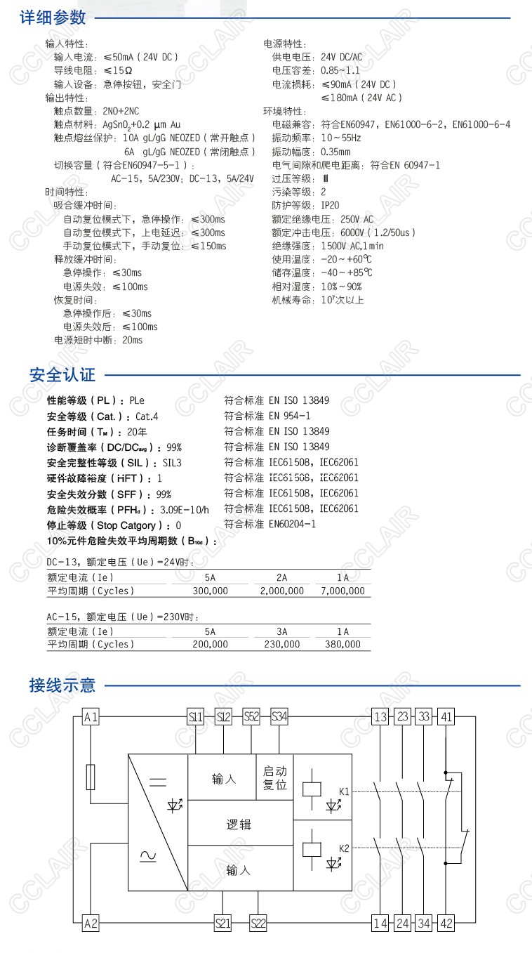 詳細(xì)信息 CZSR8001-2A2B 急停按鈕、安全門輸入安全繼電器