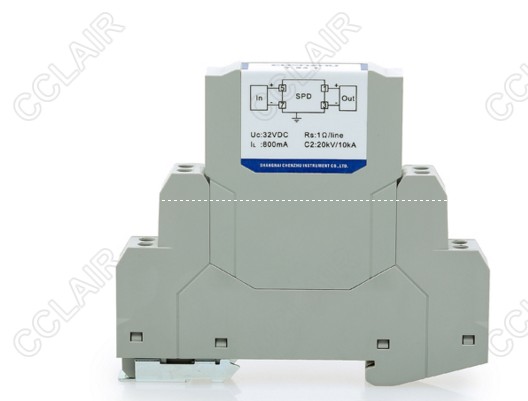 5V信號SPD,二線制,適用于線對地隔離電壓>500V信號回路,最大放電電流Imax(8/20us):20kA/線,12.5mm超薄,通過DIN35金屬導(dǎo)軌接地。