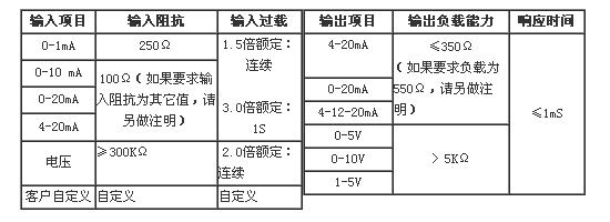 備注:用戶對產品電壓信號或電流信號的輸出帶負載能力有要求的,可以按技術要求定制。
