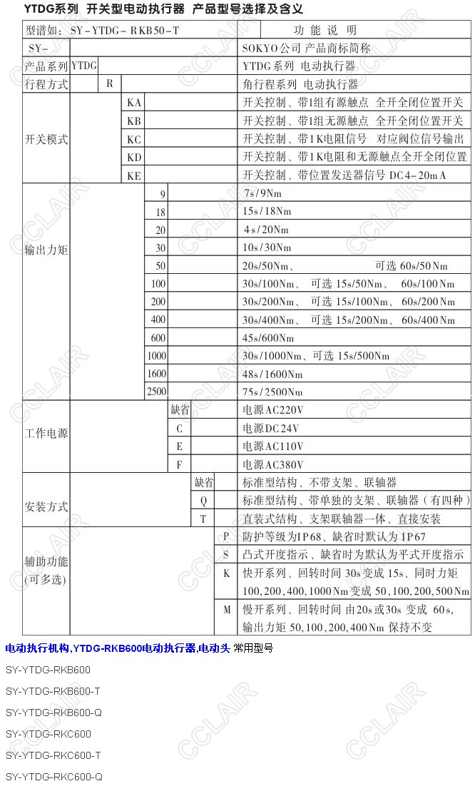 SY-YTDG-RKB600,SY-YTDG-RKB600-T,SY-YTDG-RKB600-Q,YTDG-RKB600電動執(zhí)行器電動頭