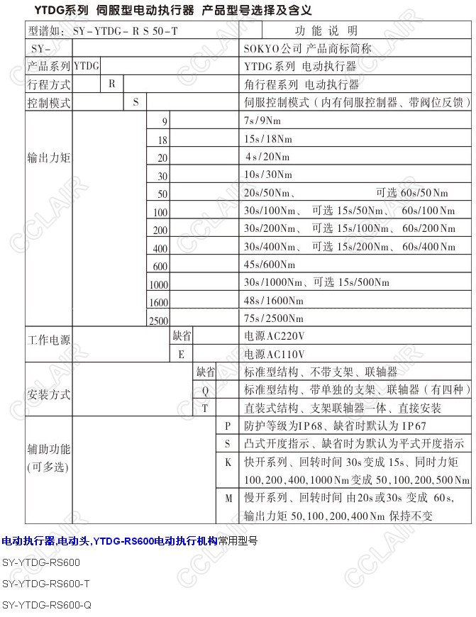 SY-YTDG-RS600,SY-YTDG-RS600-T,SY-YTDG-RS600-Q,YTDG-RS600電動執(zhí)行機(jī)構(gòu)