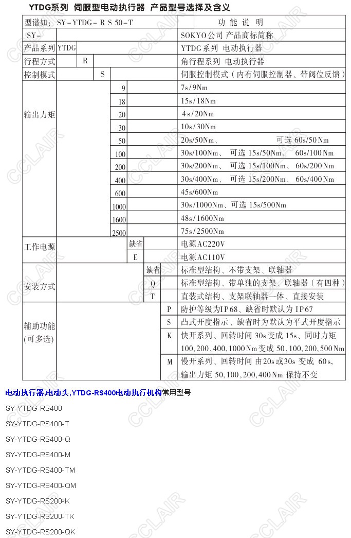 SY-YTDG-RS400,SY-YTDG-RS400-T,SY-YTDG-RS400-Q,YTDG-RS400電動執(zhí)行機(jī)構(gòu)