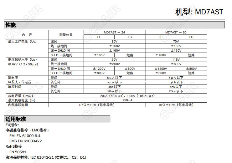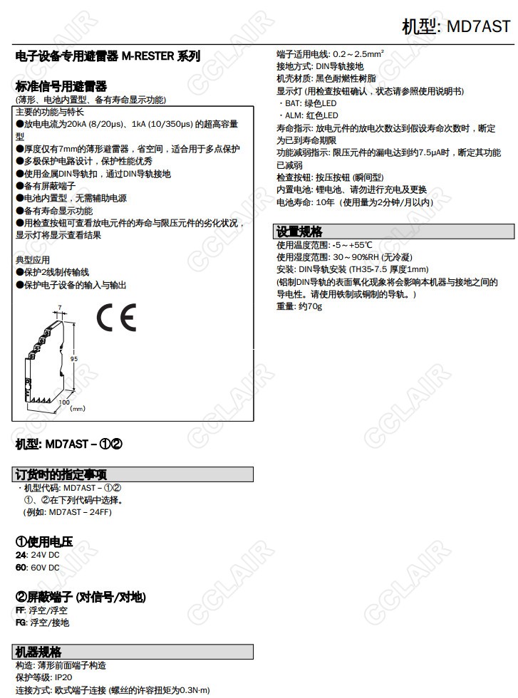 詳細(xì)信息 MD7AST,MD7AST-24FF,MD7AST-24FG,MD7AST-60FF,MD7AST-60FG,2線制信號(hào)用避雷