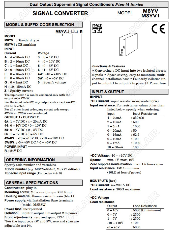 詳細(xì)信息 M8YV,M8YV-A6A-R,M8YV1-A6A-R,M8YV1-A,M8YV1-B,M8YV1-CSignal ConverterM8YV1-D,M8YV1-E,M8YV1-F,M8YV1-G,M8YV1-H,M8YV1-Z,M8YV1-3,M8YV1-4,M8YV1-5,M8YV1-6,M8YV1-4W,M8YV1-5W,M8YV1-0,