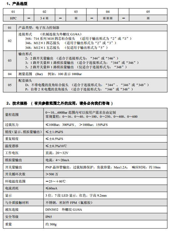 HPC-348-5-250-P,HPC-348-5-400-P,HPC-348-5-600-P智能電子壓力控制器