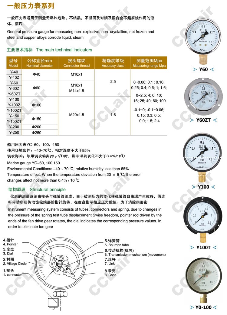 Y-40,Y-40Z,Y-60,Y-60Z,Y-40ZT,Y-100,Y-100Z,Y-100ZT,Y-150,Y-150ZT,Y-200,Y-250,一般壓力表