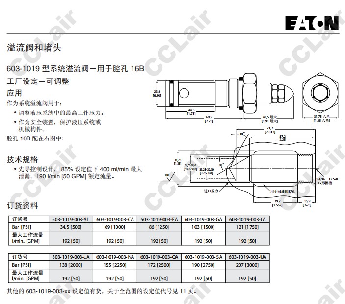 603-1019,603-1019-003-AL,603-1019-003-CA,603-1019-003-EA,威格士-Vickers,溢流閥
