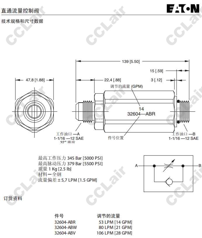 詳細信息 32604,直通流量控制閥,威格士-Vickers