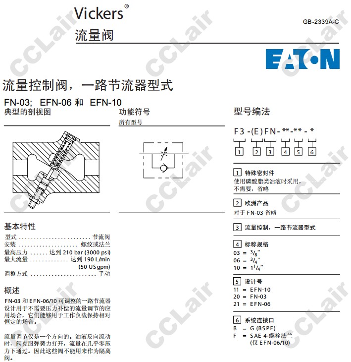 FN-03,EFN-06,EFN-10,FN-03-11-B,FN-03-20-B,FN-03-21-B,EFN-06-21-F,威格士-VICKERS,流量控制閥