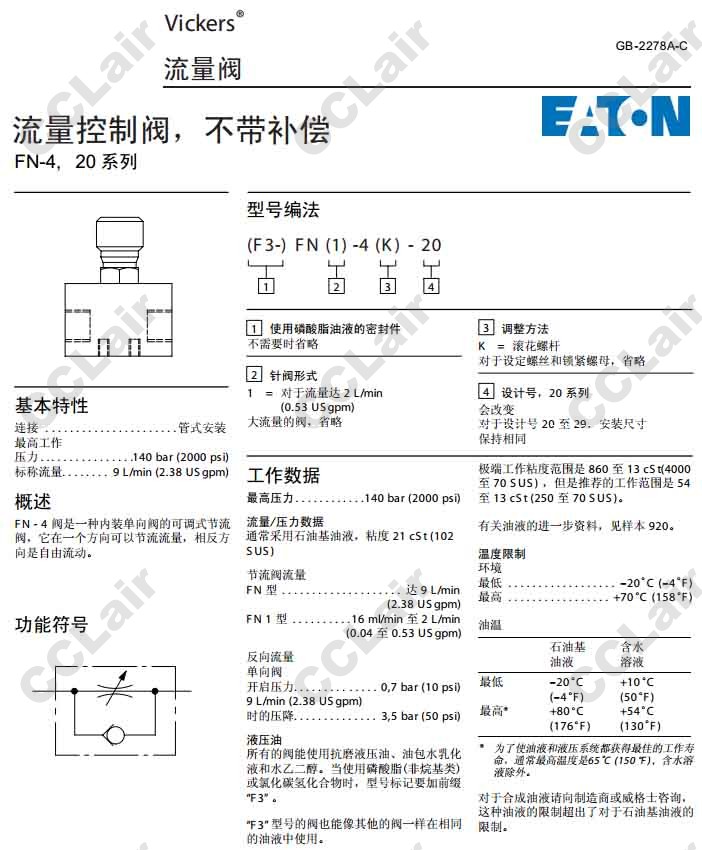 FN1-4K-20,FN-4K-20,FN1-4-20,流量控制閥,威格士-Vickers