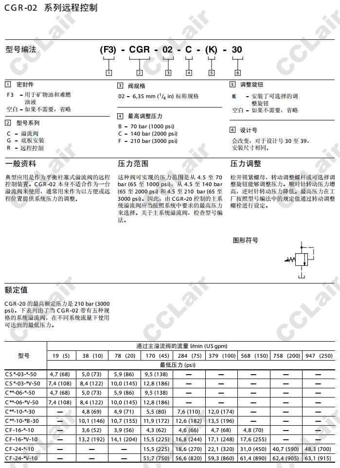 詳細信息 CGR-02-C-30,CGR-02-B-30,CGR-02-F-K-30,CGR-02-C-K-30,CGR-02-B-K-30,CGR-02-F-30,溢流閥,威格士-Vickers