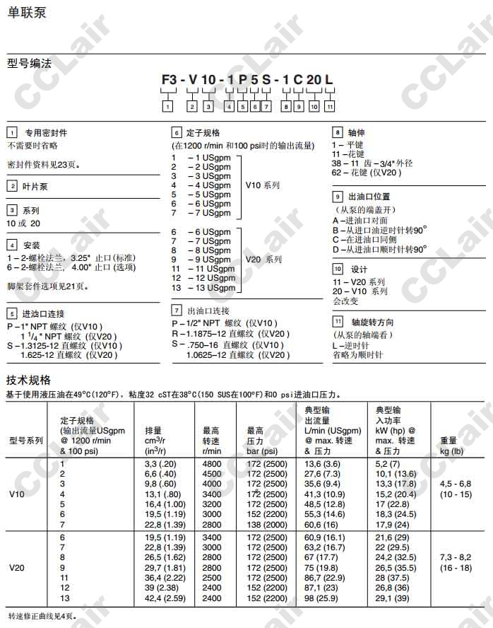 V10,V20,V10-1P1P-1C20,V10-1P1P-1C20,V10-1S2S-1C20,V10-1S2S-1C20,威格士-Vickers,定量葉片泵