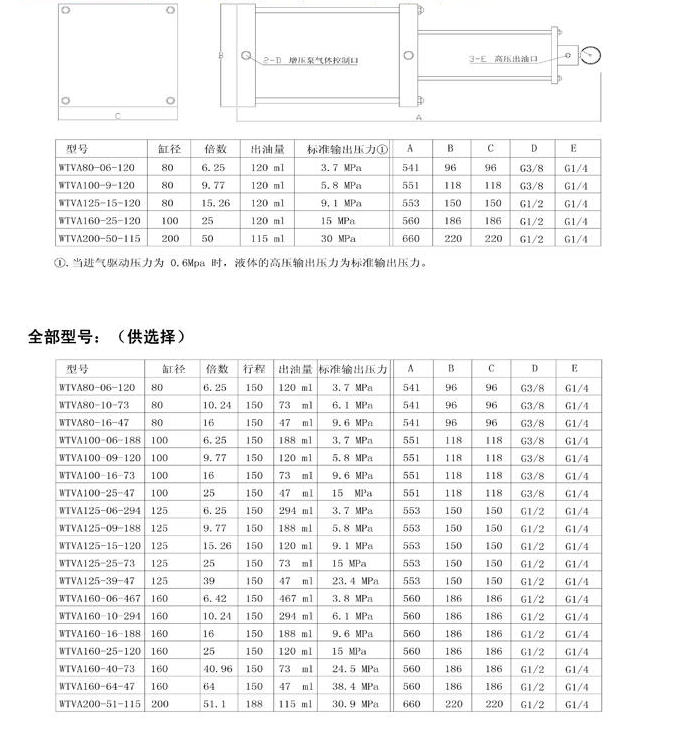 WTVA80-06-120,WTVA80-10-73,WTVA80-16-47,WTVA100-06-188,WTVA100-09-120,氣動(dòng)高倍增壓閥