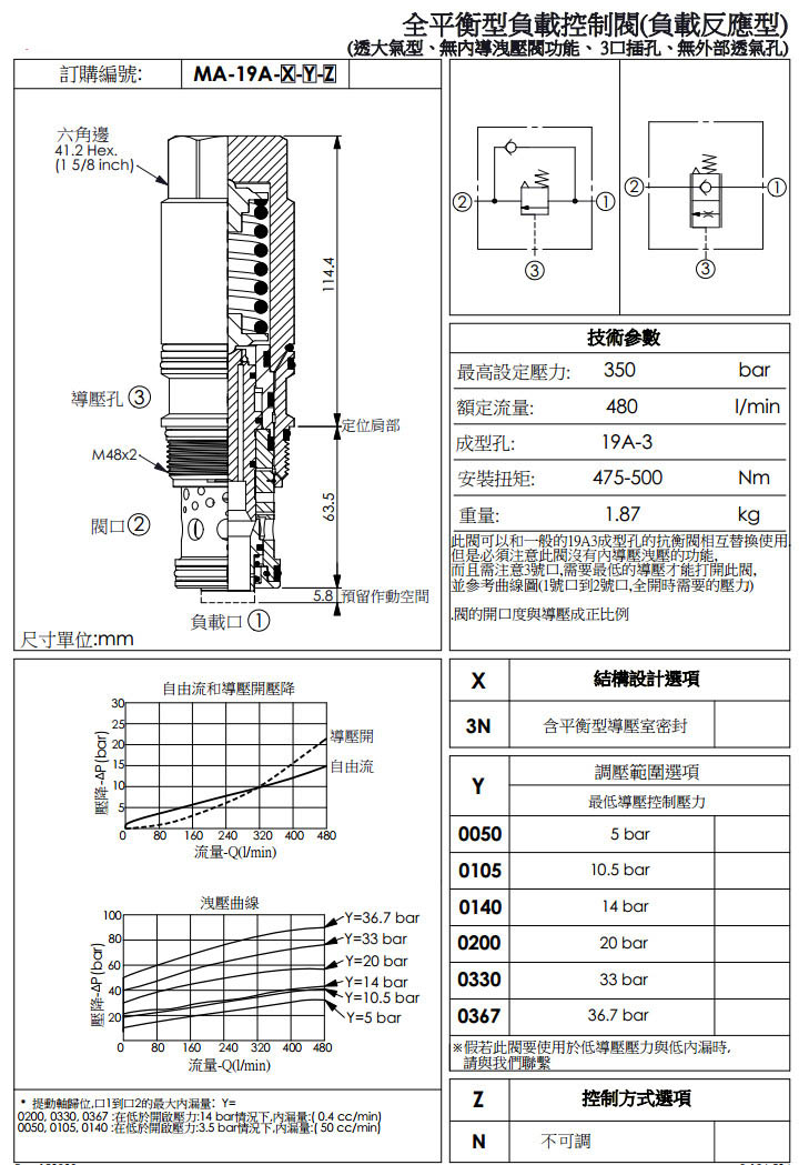 MA-19A-3N-0050-N,MA-19A-3N-0105-N,MA-19A-3N-0140-N,MA-19A-3N-0200-N,winner全平衡型負(fù)載控制閥
