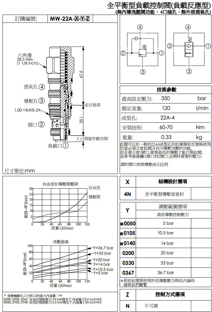 MW-22A-3N-0050-N,MW-22A-3N-0105-N,MW-22A-3N-0140-N,MW-22A-3N-0200-N,winner全平衡型負(fù)載控制閥