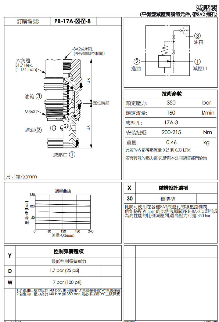 PB-17A-30-D-8,PB-17A-30-W-8,winner減壓閥