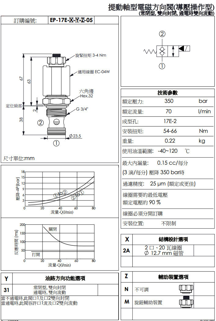 詳細(xì)信息 EP-17W-2A-31-N-05,EP-17W-2A-31-M-05,EP-17W-2A-31-N-85,EP-17W-2A-31-M-85,winner提動(dòng)軸型電磁方向閥