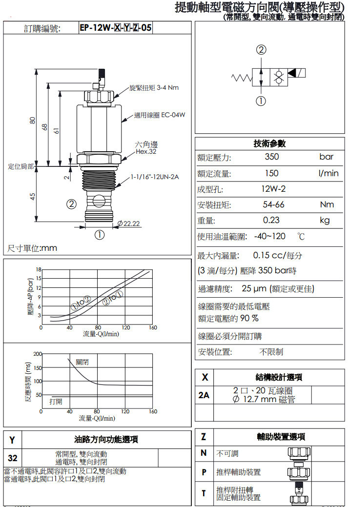 詳細信息 EP-12W-2A-32-N-05,EP-12W-2A-32-P-05,EP-12W-2A-32-T-05,winner提動軸型電磁方向閥
