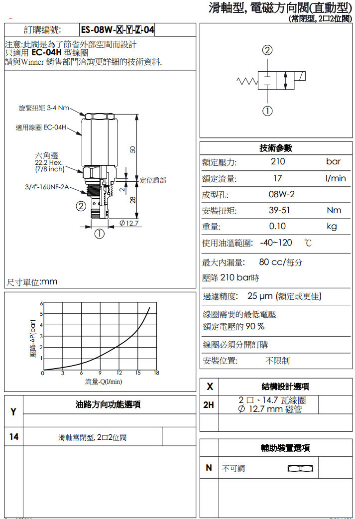ES-08W-2H-14-N-04,ES-08W-2H-15-N-04,winner滑軸型電磁方向閥