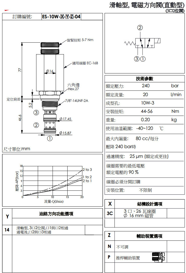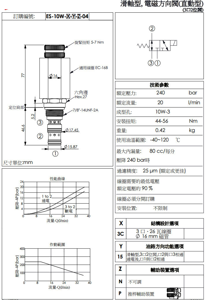 詳細信息 ES-10W-3C-11-N-04,ES-10W-3C-11-P-04,ES-10W-3C-14-N-04,ES-10W-3C-15-N-04,winner滑軸型電磁方向閥