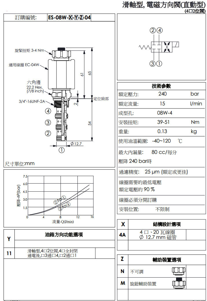 詳細信息 ES-08W-4A-10-N-04,ES-08W-4A-10-M-04,ES-08W-4A-11-N-04,ES-08W-4A-11-M-04,winner滑軸型電磁方向閥